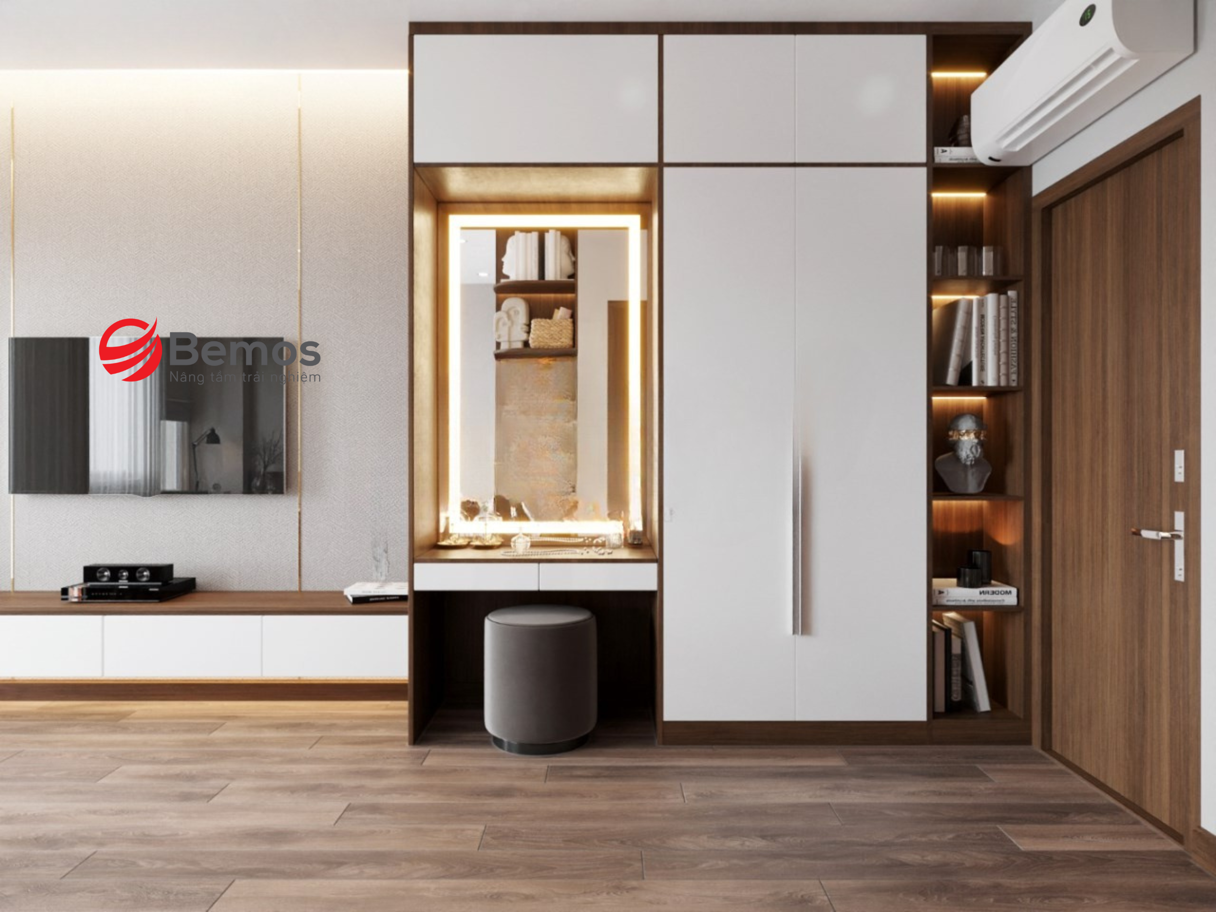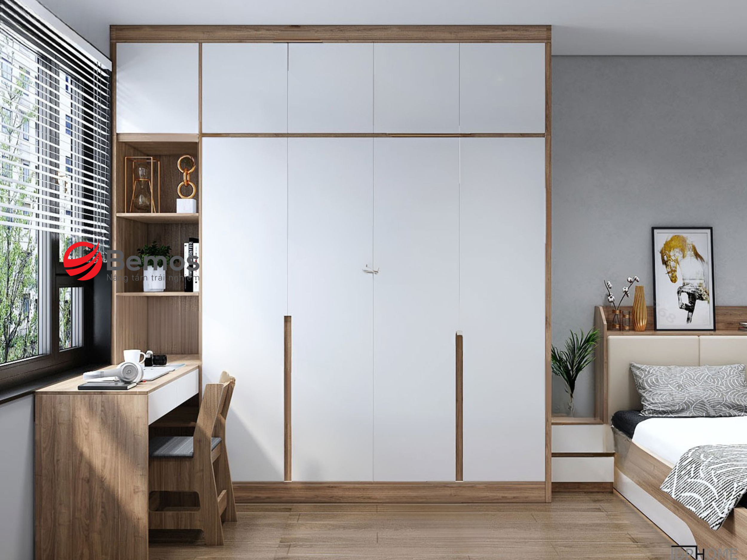 Ngày nay, nơi mà không gian sống ngày càng hạn chế, đặc biệt ở các căn hộ chung cư hoặc nhà phố nhỏ hẹp, việc tối ưu hóa diện tích trở thành một nhu cầu thiết yếu. Bàn liền tủ quần áo nổi lên như một giải pháp thông minh, kết hợp hoàn hảo giữa chức năng lưu trữ quần áo và không gian làm việc hoặc trang điểm. Nếu bạn đang tìm kiếm ý tưởng nội thất phòng ngủ để vừa tiết kiệm chỗ vừa tăng tính thẩm mỹ, thì bàn kết hợp tủ quần áo chính là lựa chọn đáng cân nhắc. Cùng Bemos khám phá chi tiết dưới bài viết!