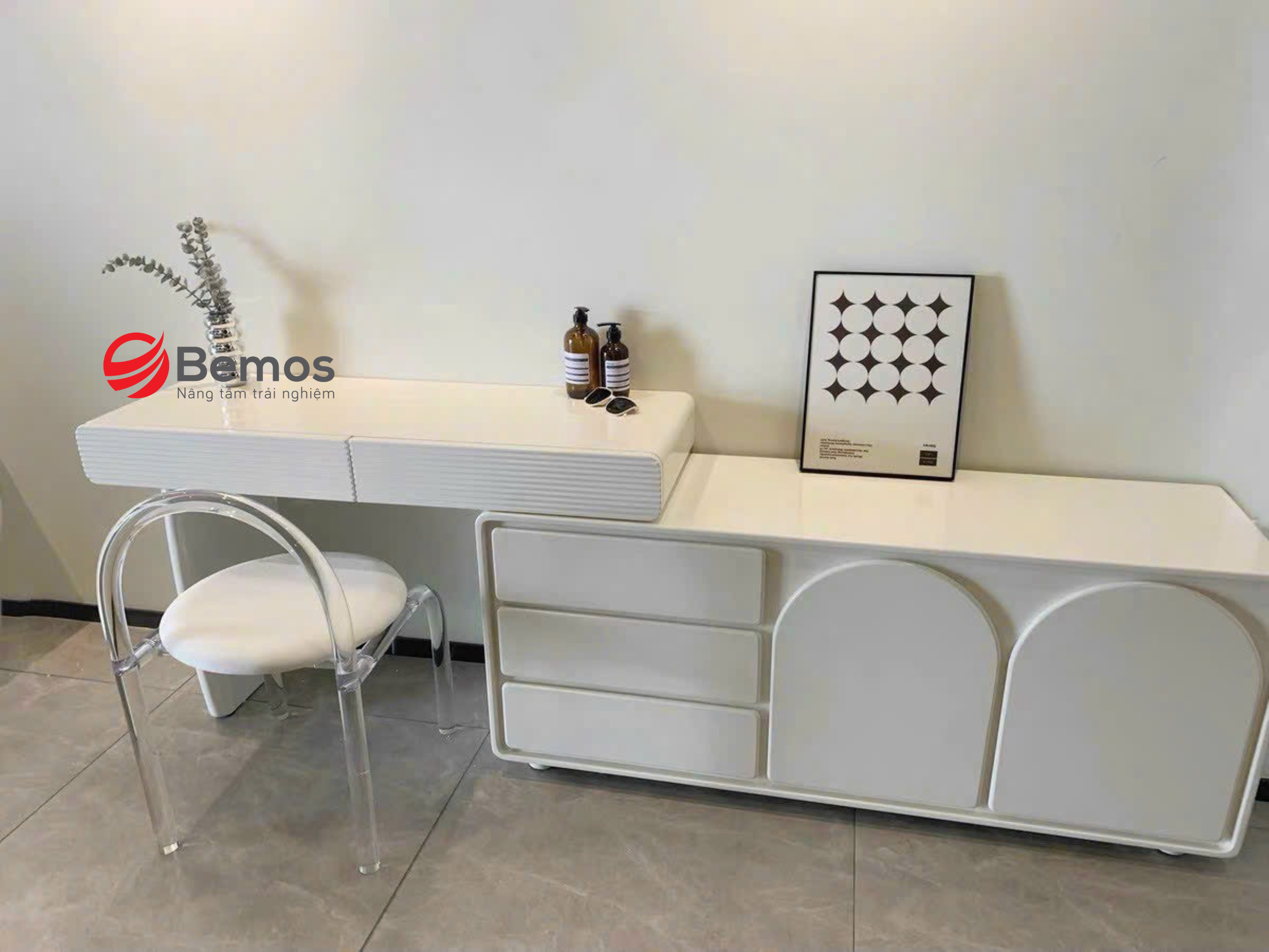 Bàn phấn thông minh là giải pháp nội thất hoàn hảo cho những ai muốn kết hợp giữa tiện nghi, thẩm mỹ và công năng trong không gian sống. Với khả năng tiết kiệm không gian, tích hợp công nghệ hiện đại và thiết kế đa dạng, sản phẩm này đáp ứng nhu cầu của cả những người dùng khó tính nhất. Khi chọn mua, hãy cân nhắc kỹ về nhu cầu, không gian và phong cách nội thất để tìm được chiếc bàn phấn phù hợp. Liên hệ ngay Bemos để được tư vấn miễn phí và đặt hàng theo ý tưởng thiết kế của bạn!