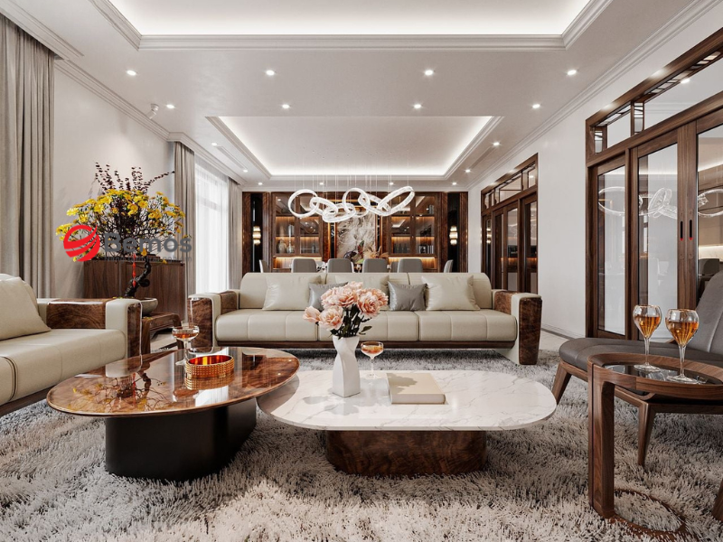 Kích thước bàn trà phải phù hợp với diện tích phòng khách và khoảng cách từ sofa đến bàn. Thông thường, bàn trà nên cách sofa khoảng 40 đến 50 cm để dễ dàng di chuyển và đặt đồ. Chọn mặt bàn đá nhân tạo hoặc đá tự nhiên đã được xử lý chống thấm, chống ố để tránh tình trạng ngấm nước từ ly trà hoặc cà phê.