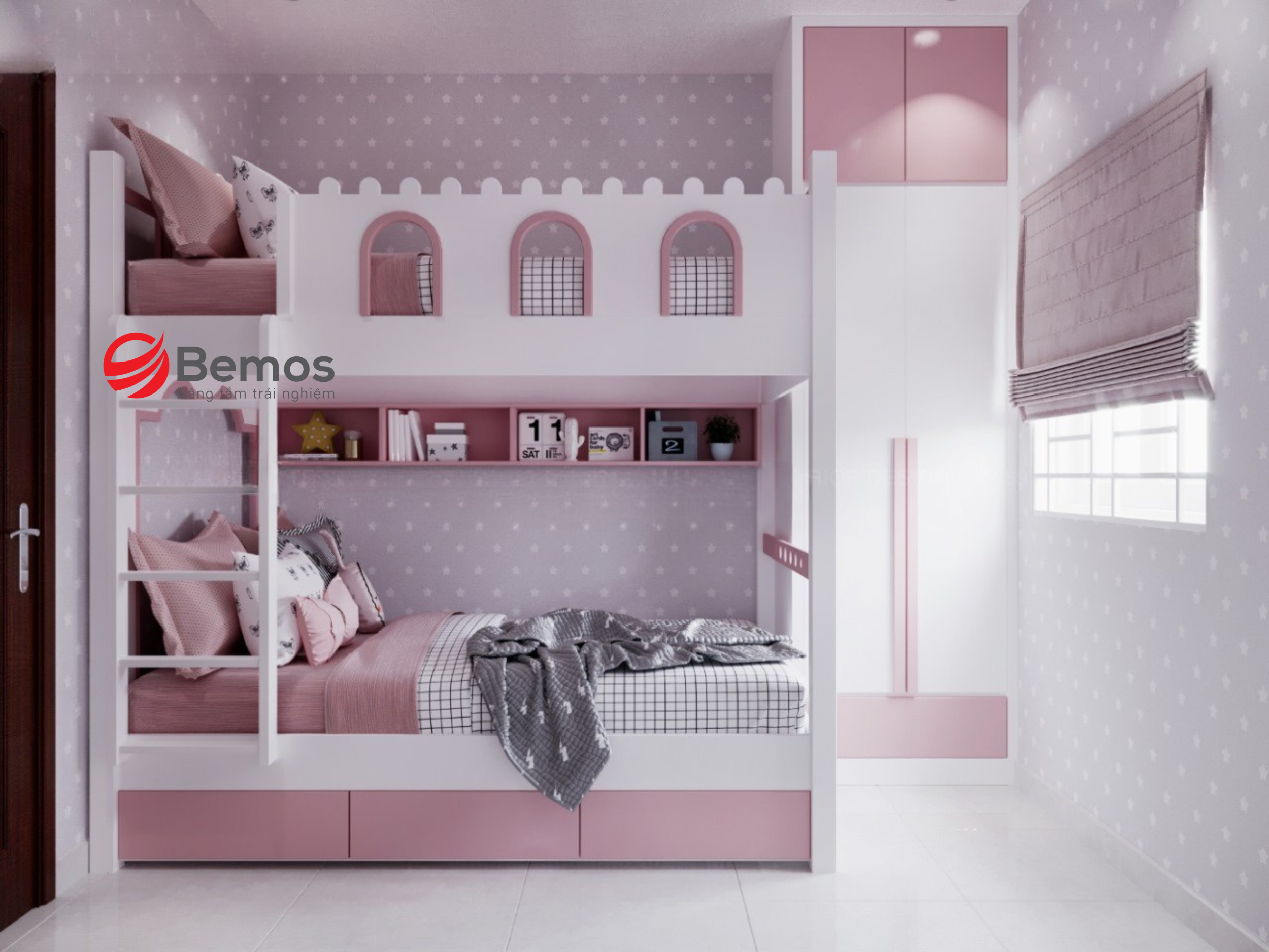 Giường ngủ màu hồng cho bé gái