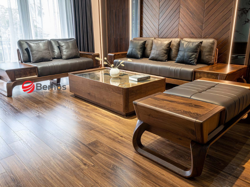 Năm 2026, sofa nguyên khối gỗ tự nhiên tiếp tục là lựa chọn hàng đầu cho phòng khách rộng rãi. Không chỉ bền vững theo