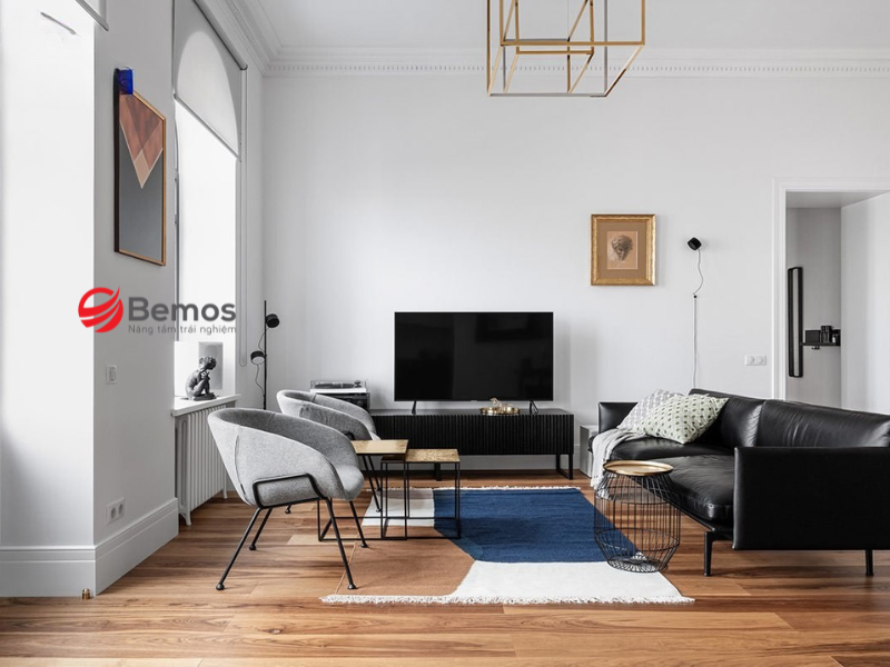 Tránh màu tối như đen, nâu đậm vì dễ làm phòng bí bách. Bạn có thể chọn màu tương phản nhẹ để tạo điểm nhấn. Màu sofa nên hài hòa với tường, sàn và rèm cửa.