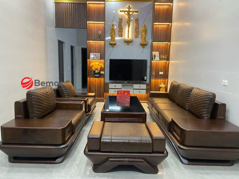 Năm 2026, sofa nguyên khối gỗ tự nhiên tiếp tục là lựa chọn hàng đầu cho phòng khách rộng rãi. Không chỉ bền vững theo